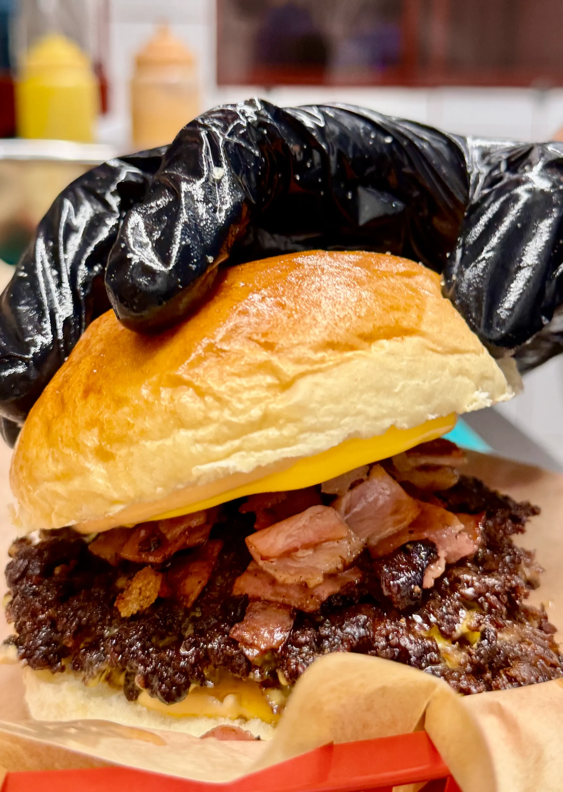 SMASHED DOUBLE BEEF PATTY, BACON CHEDDAR SAUCE, DICED ONIONS, CHEESE, HOUSE SAUCE